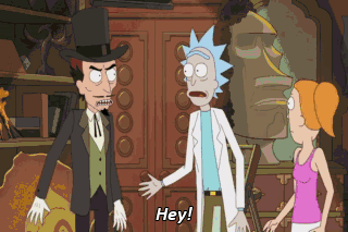 Hey! You think you're fucking so great! Stop it! No! Fuck yeah, man. Stop it right now! Grandpa Rick, I like working here. You work for the devil. So what? BOTH: "So what?" Yes!