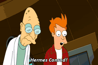Hermes Conrad! (CRYING) Man! I'm dripping with placenta. Good thing it's Casual Friday. Amy Wong! Ooh! Baby soft. Indeed.