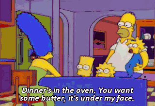 Dinner's in the oven. You want some butter, it's under my face. Marge needs help. And God knows I'm not the man to provide it. But I know who can.