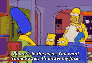 Dinner's in the oven. You want some butter, it's under my face. Marge needs help. And God knows I'm not the man to provide it. But I know who can.