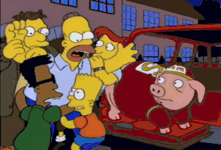 It's a defenseless animal! The pig's acting kinda funny. He and Mr. Simpson split a case of malt liquor.
