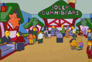 Ooh, gummi bears! Gummi calves heads! Gummi jawbreakers!