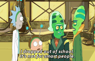 I dropped out of school. It's not for smart people. Ohhhh, snap!
