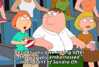 Besides, you owe me big after the way you embarrassed me in front of Sandra Oh.