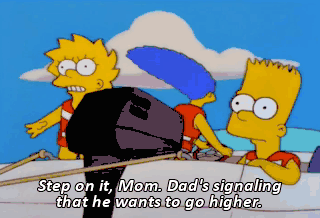 Step on it, Mom. Dad's signaling that he wants to go higher.