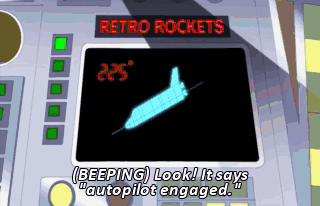 (BEEPING) Look! It says "autopilot engaged." Good for him. I'm glad he found someone. Oh, thank God, we're saved!
