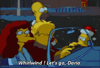 Whirlwind ! Let's go, Daria. Beat it ! Scram ! Get lost ! You came in last for the last time ! Look, Dad, it's Santa's Little Helper. And don't come back !