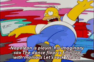 Napoleon is playin' his imaginary sax The dance floor is fillin' up with maniacs Let's rock Whoa! Wow. A '50s nostalgia café.