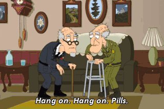 Hang on. Hang on. Pills. Yeah, me, too. Wednesday, right? Yeah, it's Wednesday.