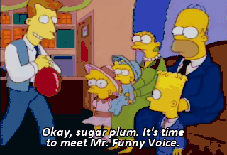 Okay, sugar plum. It's time to meet Mr. Funny Voice. Hello, I'll-- Oh, it's just air.