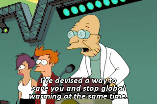 I've devised a way to save you and stop global warming at the same time. Granted, you're all blasting out greenhouse gases-- You're one to talk! But we can use those very gases to save the planet.