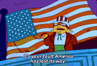 It's your fault America has lost its way. I'm sorry. It's all your fault ! I'm sorry. I'm sorry.