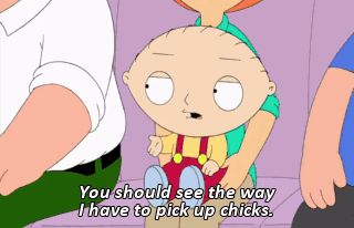 You should see the way I have to pick up chicks. Hi. (GIGGLING)