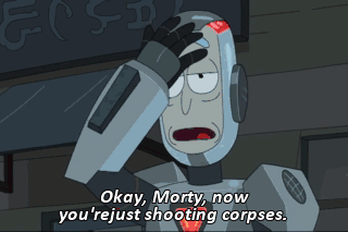 Okay, Morty, now you'rejust shooting corpses. How do you like this? Okay, buddy. All right. That's good. Good job. Time to go home.