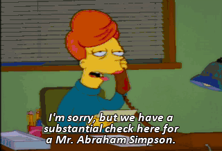 I'm sorry, but we have a substantial check here for a Mr. Abraham Simpson. That's right. I did the Iggy. Ah, my high school yearbook. You handsome devil. "I can't believe I ate the whole thing."