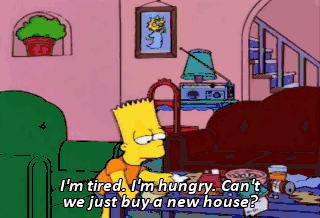 I'm tired. I'm hungry. Can't we just buy a new house? Oh, Bart, cleaning doesn't have to be a chore.