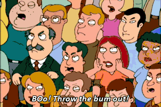 BOo! Throw the bum out!