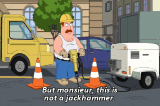 But monsieur, this is not a jackhammer. It is a Jacqueshammer. (DRILLING IN FRENCH ACCENT)
