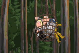 How are we going to get out of here? Wait a second, guys. I got an idea. Remember that laser I used to break Leia out of Jabba's handcuffs? Well, here comes a little tiny saw! (ALL SCREAMING)