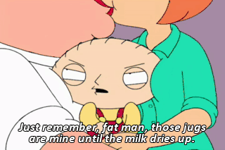 Just remember, fat man, those jugs are mine until the milk dries up. Then you can have the remains.