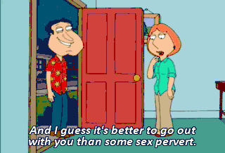 And I guess it's better to go out with you than some sex pervert. I'm in! Giggidy, giggidy, giggidy, giggidy, goo! Oh! God blast it! Would you hold it for 5 seconds?