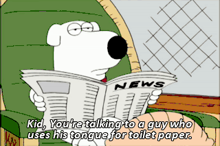 Kid, You're talking to a guy who uses his tongue for toilet paper.