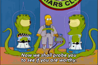 - Now we shall probe you to see if you are worthy. - Yeah, word for word! Okay, let's see what we've got. It has to be on channel 3. Yes, yes.