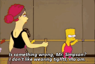 Is something wrong, Mr. Simpson? I don't like wearing tights, ma'am.