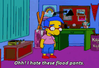 Ohh! I hate these flood pants. Hey, they're working! My feet are soaked, but my cuffs are bone-dry! Everything's comin' up Milhouse!