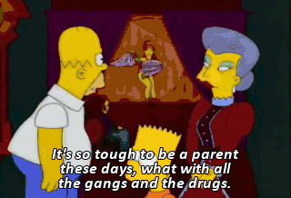 It's so tough to be a parent these days, what with all the gangs and the drugs.