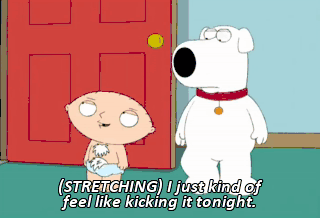 (STRETCHING) I just kind of feel like kicking it tonight.
