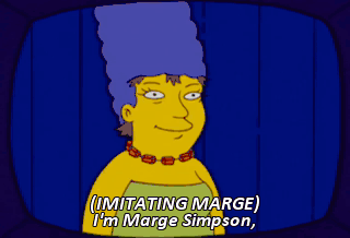 (IMITATING MARGE) I'm Marge Simpson, and even I'm against "Families Come First." Now it's time to do some coke off the blade of a knife.