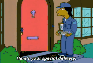 Here's your special delivery. Thanks. That's for keepin' me waiting.