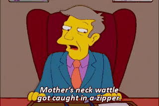Mother's neck wattle got caught in a zipper.