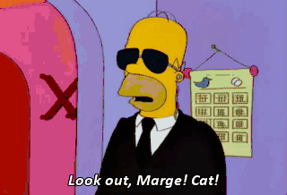 Look out, Marge! Cat! I know you're excited about starting a new job, but could you just relax for now?