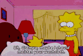 Uh, Grampa, maybe I should moisten your washcloth.