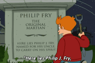 "Here lies Philip J. Fry,