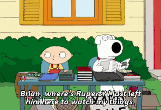Brian, where's Rupert? I just left him here to watch my things. Uh-oh.