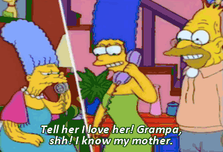 Tell her I love her! Grampa, shh! I know my mother.