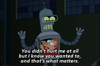You didn't hurt me at all but I know you wanted to, and that's what matters. Here's to you.