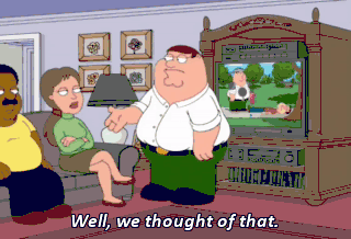 Well, we thought of that. PETER: Oh, no! Quagmire's dead! Wait! We might still be able to save... Oh, no! (IMITATING FANFARE)