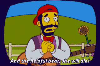 And the helpful bear, she will die! (COUGHING) Tickets, tickets buy them now Roofi he will show you how Visa, AMEX or MC Or make out that check to me!