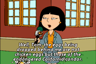 Well, Tom, the eggs being dropped behind me are not chicken eggs but those of the endangered California condor.