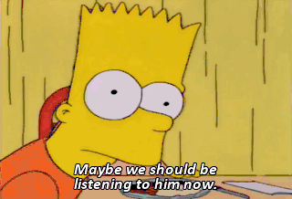 Maybe we should be listening to him now. I'm a member. Huh? What? What? Huh? You're a member of the Stonecutters, Grampa? Oh, sure. Let's see. Mmm--