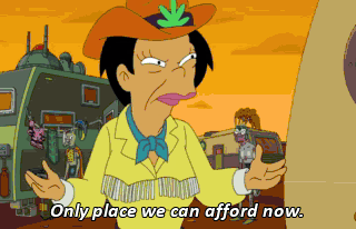 Only place we can afford now. So just drop it here on this bloody mattress? (SOBBING) Thanks, Tissue Ghost. DR. ZOIDBERG: You can't afford tissue anymore.