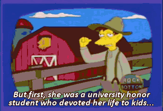 But first, she was a university honor student who devoted her life to kids... until the night a grossly overweight pervert named Homer Simpson... gave her a crash course in depravity.