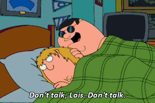 Don't talk, Lois. Don't talk. Just let me do all the work. Yeah. Now feel my warm breath on the nape of your neck. My hands on your big soft boobs running down your big manlike.... Holy crap, it's Chris.