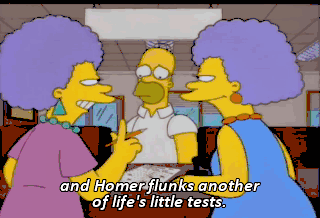 and Homer flunks another of life's little tests. And what's this? Oh. Someone didn't fill in a circle all the way. Oh! Oh. Oh, boy. - Oh, that felt good. - Let me try.