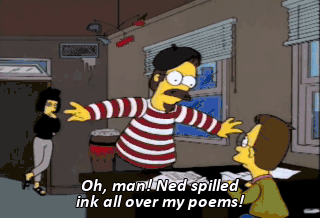 Oh, man! Ned spilled ink all over my poems! He's a real flat tire. I mean a cube, man. He's putting us on the train to Squaresville, Mona.