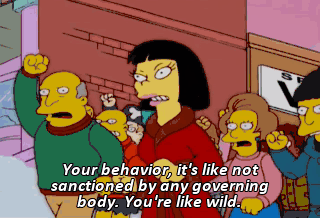 Your behavior, it's like not sanctioned by any governing body. You're like wild.